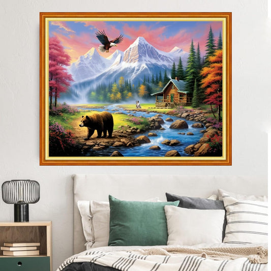 Dimxvean Stamped Cross Stitch Kits,Cross Stitch Kits for Adults Beginners,Embroidery Kits Full Range of Cross Stitch Stamped Kits Needlepoint Kits Cross Stitch Patterns-Eagle Mountain River 16x20 inch