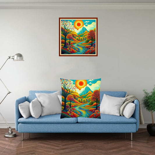 Fanxvivy Stamped Cross Stitch Kits for Adults Beginners Pillow Needlepoint Kit with Embroidery Pattern Needlework Kit Prestamped Stitches Kit 11CT Cross Stitching-Paradise on Earth 18x18 inch