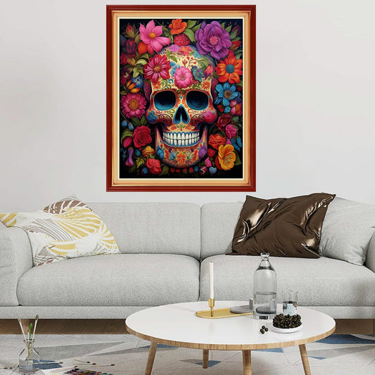 Dimxvean Stamped Cross Stitch Kits,Cross Stitch Kits for Adults Beginners,Embroidery Kits Full Range of Cross Stitch Stamped Kits Needlepoint Kits Cross Stitch Patterns-Colorful Skull 16x20 inch