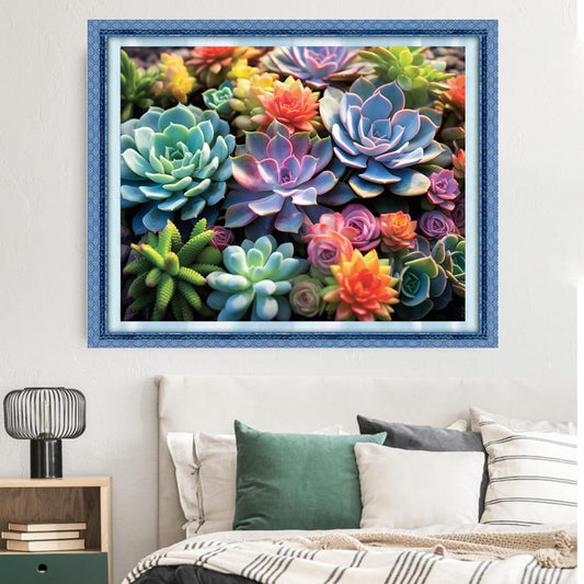 Dimxvean Stamped Cross Stitch Kits,Cross Stitch Kits for Adults Beginners,Embroidery Kits Full Range of Cross Stitch Stamped Kits Needlepoint Kits Cross Stitch Patterns-Succulent Plants 16x20 inch