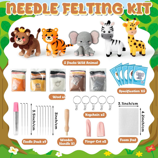 WATINC Needle Felting Kit - 5 Set Unique Different Cute Doll Wool Felt Needle Tools Foam Pad Instruction, DIY Home Decoration Craft Party Supplies for Art Work Starter Beginners (Wild Animal)
