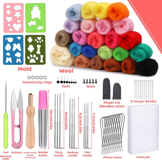 Catopia Needle Felting Kit,Wool Roving 20 Colors Set,Tools for Felted Animal Needle Felting Supplies,Needle Wool Felting Tools Kit