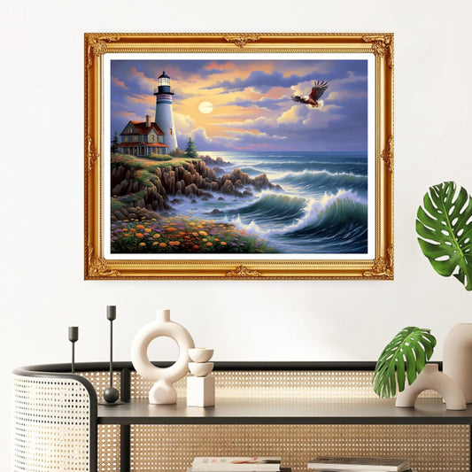 Redxing Stamped Cross Stitch Kits Full Range of Embroidery Starter Kits- Needlepoint Counted Cross Stitch Kits for Beginner Adults 11CT Printed Embroidery Kit-Seaside Lighthouse 16x20 inch