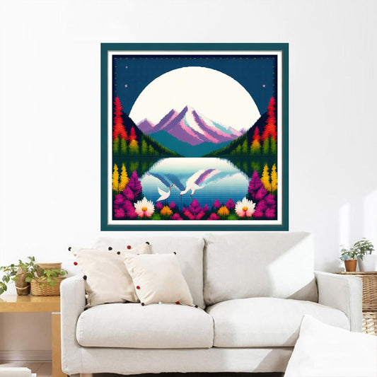 Redxing Stamped Cross Stitch Kits Full Range of Embroidery Starter Kits- Needlepoint Counted Cross Stitch Kits for Beginner Adults 11CT Printed Embroidery Kit-Autumn Scenery Swan Lake 18x18 inch