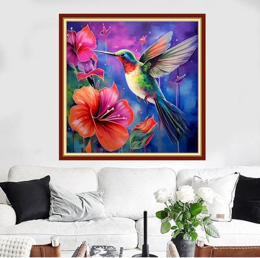 Redxing Stamped Cross Stitch Kits Full Range of Embroidery Starter Kits- Needlepoint Counted Cross Stitch Kits for Beginner Adults 11CT Printed Embroidery Kit-Hummingbirds Gather Honey 18x18 inch