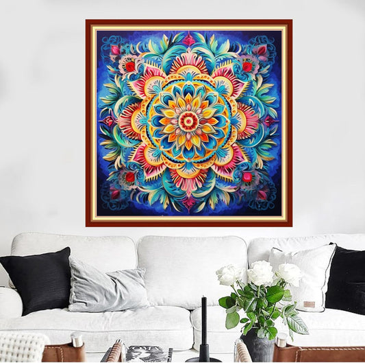 Redxing Stamped Cross Stitch Kits Full Range of Embroidery Starter Kits- Needlepoint Counted Cross Stitch Kits for Beginner Adults 11CT Printed Embroidery Kit-Colorful Mandala 18x18 inch