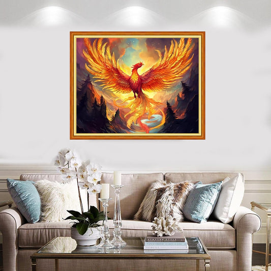 Redxing Stamped Cross Stitch Kits Full Range of Embroidery Starter Kits- Needlepoint Counted Cross Stitch Kits for Beginner Adults 11CT Printed Embroidery Kit-Fire Phoenix Mountains Rivers 16x20 inch
