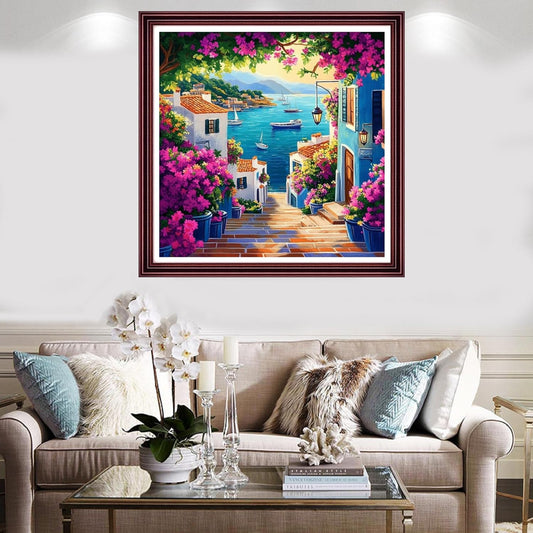 Redxing Stamped Cross Stitch Kits Full Range of Embroidery Starter Kits- Needlepoint Counted Cross Stitch Kits for Beginner Adults 11CT Printed Embroidery Kit-Seaside Floral Scenery 18x18 inch