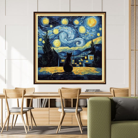 Dimensean Stamped Cross Stitch Kits Full Range of Embroidery Patterns Starter Kits for Beginners Adult or Kids DIY Cross Stitches Needlepoint Kits 11CT-Van Gogh Starry Cat 18x18 inch