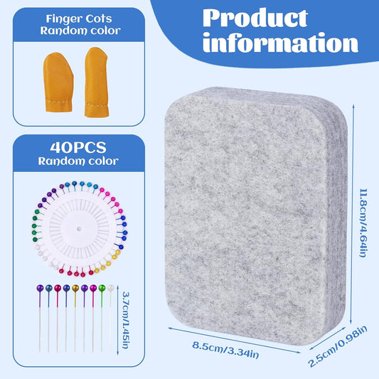 Needle Felting Mat, Needle Felting Tools, 4.6x3.3x1 inch Natural Felting Wool Mat, Felting Pad, Needle Felting Supplies, with Finger Cots and 40 Straight Pins, Felt Pad for Making Felting Crafts