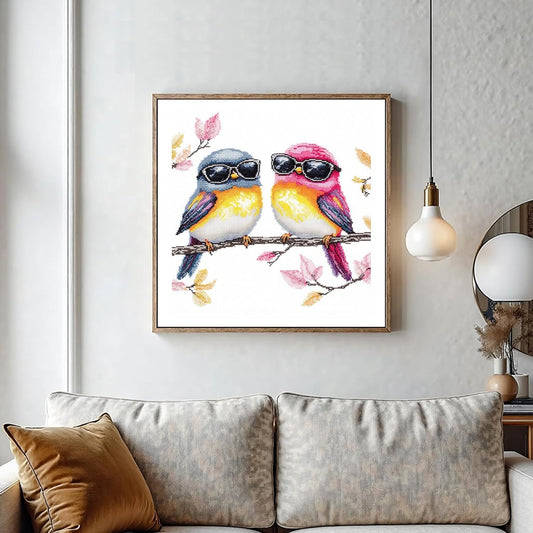 51buyoutgo 11CT Stamped Cross Stitch Kits for Adults - 12x12 in Embroidery Kit with Funny Easy Washable Colorful Birds Pattern, Pre Printed Fabric, Fit for DIY Home Decor, Mom Gifts & Stress Relief