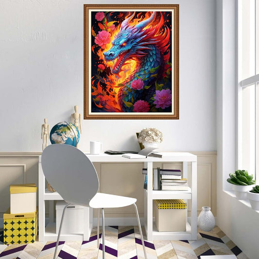 Disnesart Cross Stitch Stamped Full Embroidery Kits DIY 11CT Cotton Thread Printed DIY Needlepoint Kits Craft Needlework Set Cross-Stitch Stamped Sets-Flower Dragon 16x20 inch