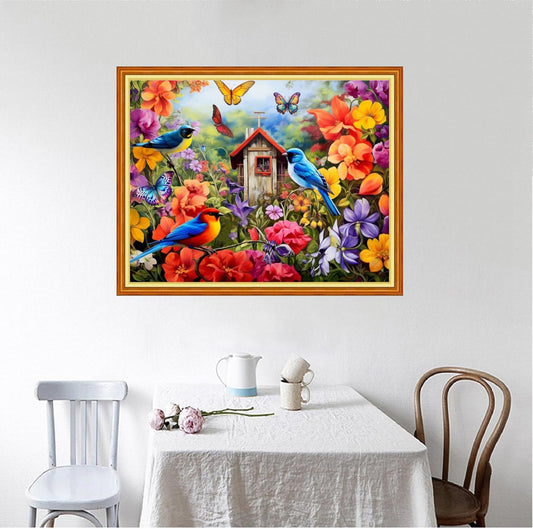 Foxhool Beginners Cross Stitch Kits Stamped Full Range of Embroidery Kits for Adults DIY Cross Stitches kit Embroidery Patterns for Needlepoint kit-Birds and Flowers 18x18 inch