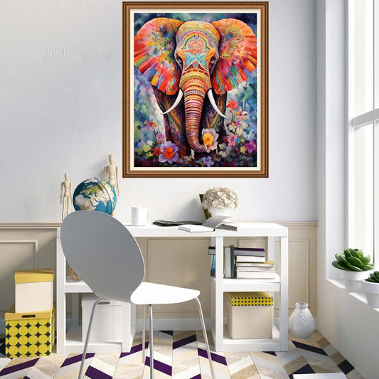 Disnesart Cross Stitch Stamped Full Embroidery Kits DIY 11CT Cotton Thread Printed DIY Needlepoint Kits Craft Needlework Set Cross-Stitch Stamped Sets-Colorful Elephant 16x20 inch