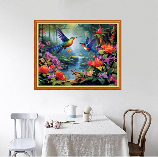 Foxhool Beginners Cross Stitch Kits Stamped Full Range of Embroidery Kits for Adults DIY Cross Stitches kit Embroidery Patterns for Needlepoint kit-Hummingbird Scenery 16x20 inch