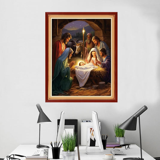 Foxhool Beginners Cross Stitch Kits Stamped Full Range of Embroidery Kits for Adults DIY Cross Stitches kit Embroidery Patterns for Needlepoint kit-Great Nativity 16x20 inch