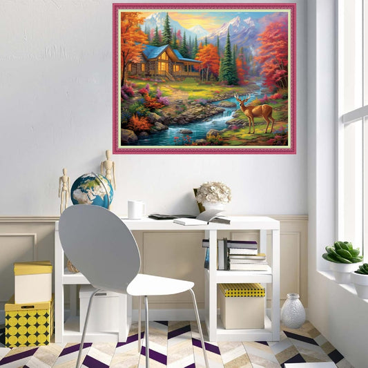 Disnesart Cross Stitch Stamped Full Embroidery Kits DIY 11CT Cotton Thread Printed DIY Needlepoint Kits Craft Needlework Set Cross-Stitch Stamped Sets-Deep Autumn Homeland 16x20 inch
