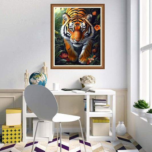 Disnesart Cross Stitch Stamped Full Embroidery Kits DIY 11CT Cotton Thread Printed DIY Needlepoint Kits Craft Needlework Set Cross-Stitch Stamped Sets-Forest Tiger 16x20 inch