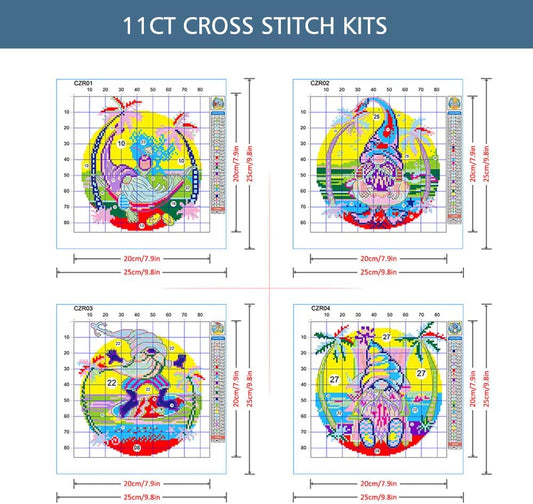 ZuoAnLF 4 Packs Stamped Cross Stitch Kits for Adults,Stamped Cross-Stitch Needlepoint Counted Kits Beginners,Embroidery Kit Arts and Crafts for Home Decor 11CT,9.8 * 9.8inch (Gnome)