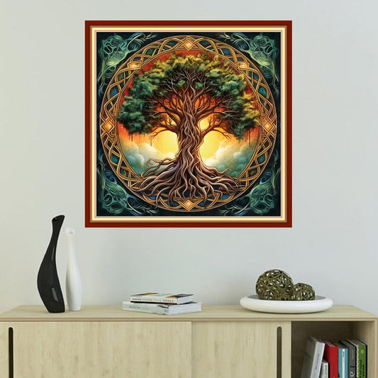 Disnesart Cross Stitch Stamped Full Embroidery Kits DIY 11CT Cotton Thread Printed DIY Needlepoint Kits Craft Needlework Set Cross-Stitch Stamped Sets-Tree of Life Sun 16x20 inch