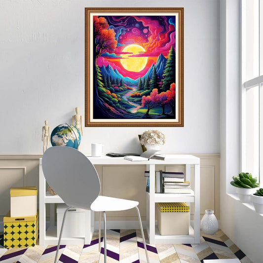 Foxhool Beginners Cross Stitch Kits Stamped Full Range of Embroidery Kits for Adults DIY Cross Stitches kit Embroidery Patterns for Needlepoint kit-Sunrise Scenery 16x20 inch