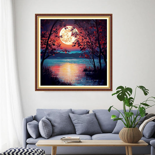 Funchey Stamped Cross Stitch Kits, DIY Cross Stitch Pattern for Adults Beginners Needlepoint Kits Embroidery Kit Arts and Crafts 11CT-Moonlight by The Lake 18x18 inch