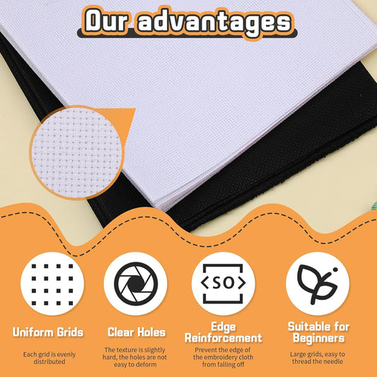 6 Pcs Cross Stitch Fabric, 14 Count Black Embroidery Fabric Cloth Cross Stitch Cloth Supplies for Needlework, DIY Embroidery Home Decoration Crafts (12 by 18-Inch)