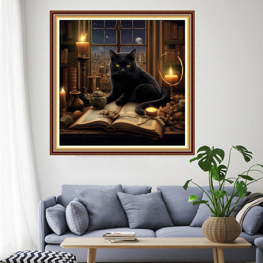 Funchey Stamped Cross Stitch Kits, DIY Cross Stitch Pattern for Adults Beginners Needlepoint Kits Embroidery Kit Arts and Crafts 11CT-Black Cat Book 18x18 inch