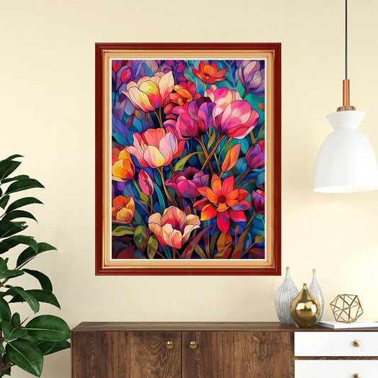 Funchey Stamped Cross Stitch Kits, DIY Cross Stitch Pattern for Adults Beginners Needlepoint Kits Embroidery Kit Arts and Crafts 11CT-Colorful Flowers 16x20 inch