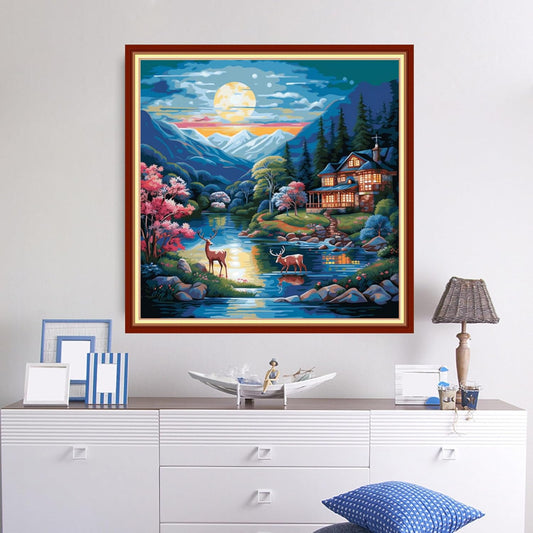Dooxvey Cross Stitch Kits for Adults Beginners,Full Range of Cross-Stitch Stamped Kits Needlepoint Kits for Beginners Embroidery Kits 11CT Cross Stitch Patterns-Night Elk 18x18 inch
