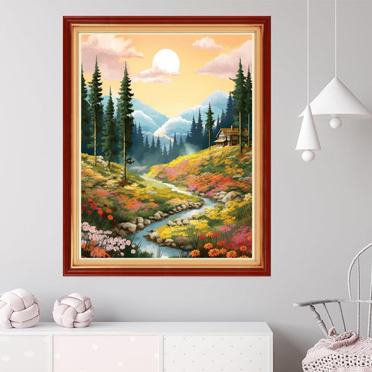 Dooxvey Cross Stitch Kit for Adults Beginners - Stamped Needlepoint Embroidery Kit, 11CT Pattern, Sunrise Forest Theme, 16x20 Inch