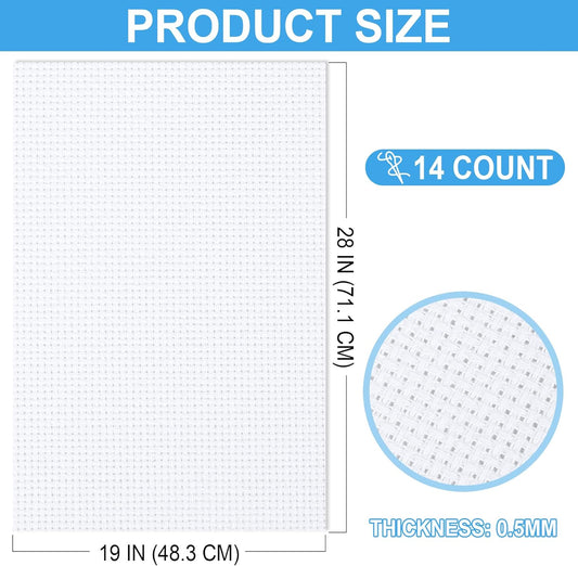 Cross Stitch Fabric 14 Count Aida Cloth 28 x 19 Inch Large Size Classic Reserve Cross Stitch Supplies Embroidery Fabric for Home DIY Craft Decoration Handmade, White