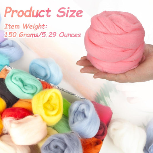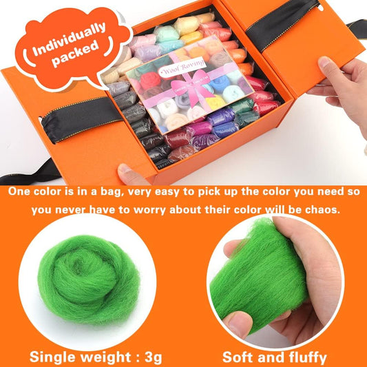 Mayboos 54 Colors Fiber Wool Yarn, 5.71oz Wool Roving for Needle Felting Wool DIY Hand Spinning, 3g/Color