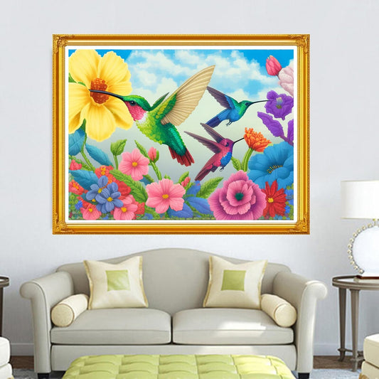 Dimensean Stamped Cross Stitch Kits Full Range of Embroidery Patterns Starter Kits for Beginners Adult or Kids DIY Cross Stitches Needlepoint Kits 11CT-Hummingbirds Gather Honey 15.7x19.7 inch
