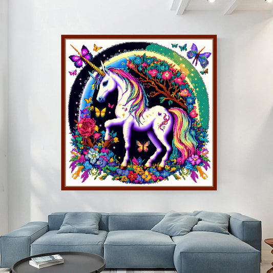 Dimensean Stamped Cross Stitch Kits Full Range of Embroidery Patterns Starter Kits for Beginners Adult or Kids DIY Cross Stitches Needlepoint Kits 11CT-Unicorn Flowers 17.7x17.7 inch