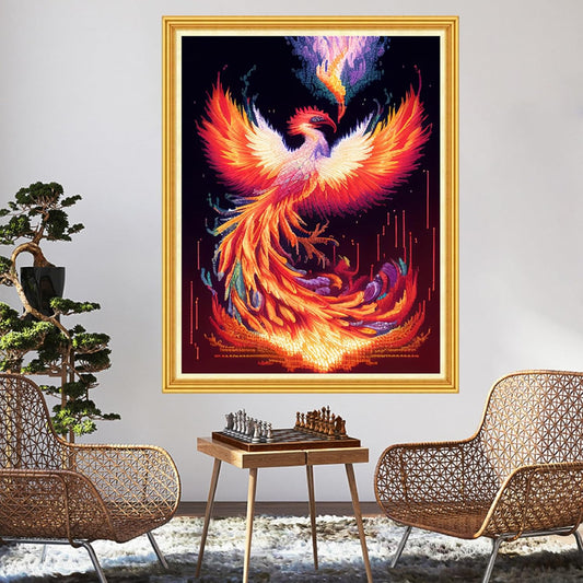 Dimensean Stamped Cross Stitch Kits Full Range of Embroidery Patterns Starter Kits for Beginners Adult or Kids DIY Cross Stitches Needlepoint Kits 11CT-Fire Phoenix 15.7x19.7 inch