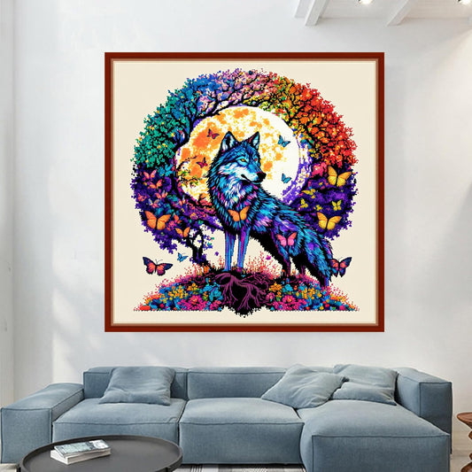 Dimensean Stamped Cross Stitch Kits Full Range of Embroidery Patterns Starter Kits for Beginners Adult or Kids DIY Cross Stitches Needlepoint Kits 11CT-Wind Chime Wolf 15.7x19.7 inch