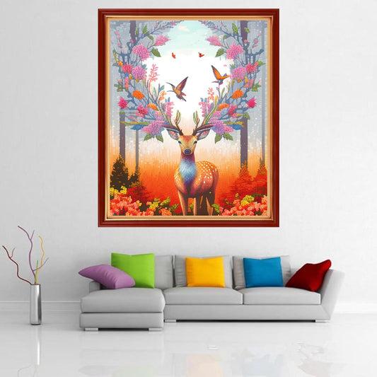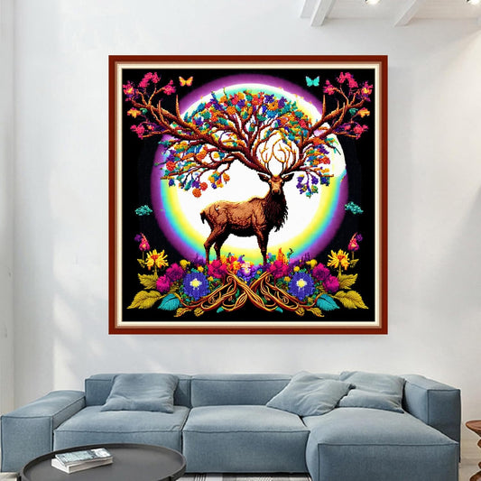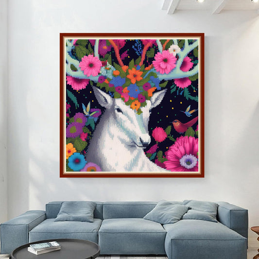 Dimensean Stamped Cross Stitch Kits Full Range of Embroidery Patterns Starter Kits for Beginners Adult or Kids DIY Cross Stitches Needlepoint Kits 11CT-Colorful Flower Deer 15.7x19.7 inch