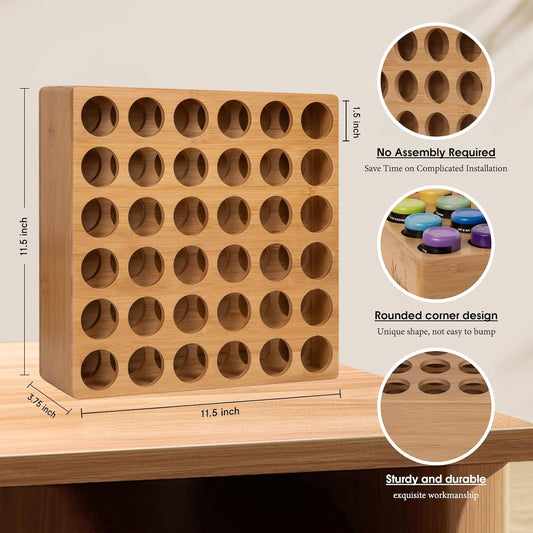 Bamboo Craft Paint Storage Organizer,36-Hole Vertical Paint Rack Stand for 2oz Craft & Acrylic Paints,Stackable Modular Storage Solution for Home, Classroom, and Office