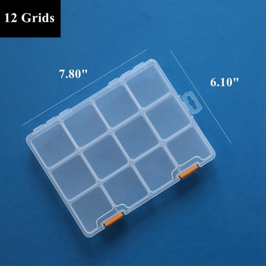 Xiaoyztan Clear Plastic Organizer, 12 Grids with Adjustable Dividers, Jewelry Box Bead Storage Container for Small Parts, Fishing Tackle, DIY Crafts, and Earrings