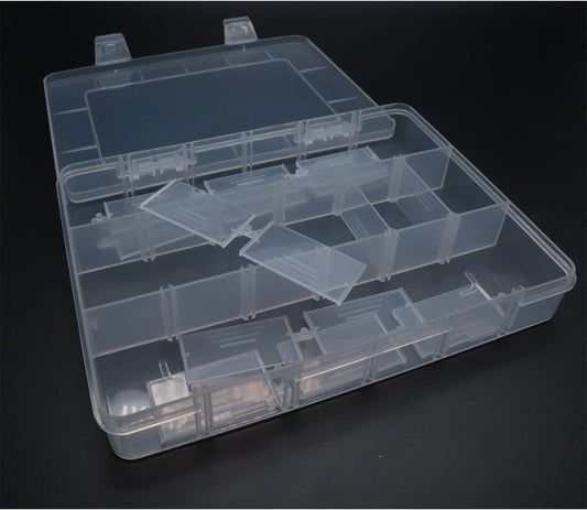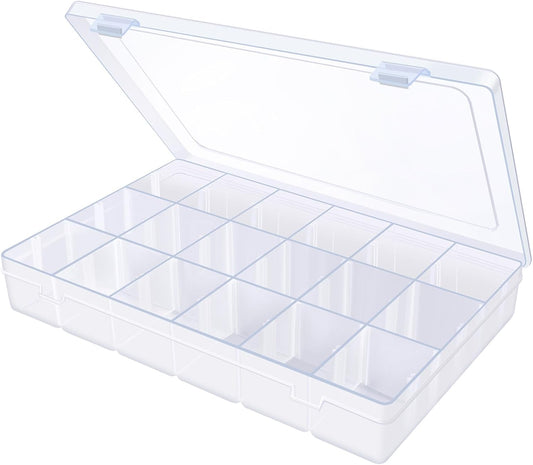 Xiaoyztan Clear Plastic Organizer, 15 Small Grids with Adjustable Dividers, Jewelry Box Bead Storage Container for Small Parts, Fishing Tackle, DIY Crafts, and Earrings, 2Pcs