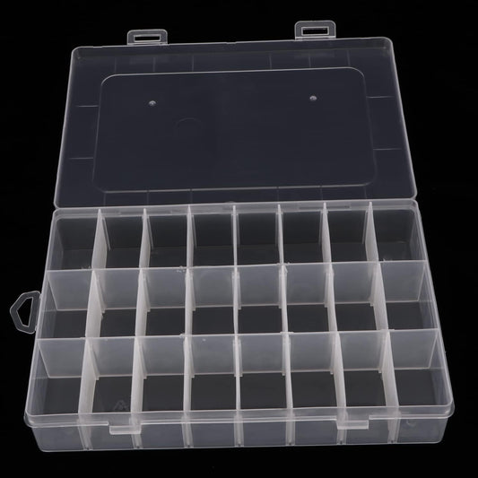 24 Grids Clear Plastic Organizer Box with Adjustable Dividers, Large Bead Storage Box, Craft Storage Container for Art DIY, Crafts Jewelry, Rock Collection, Fishing Tackles, 1 Pack