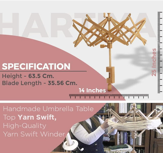 Beechwood Umbrella Swift Yarn Winder | 24" Extra-Large Wooden Ball Winder for Skeins & Hanks | Smooth Rotating Swift for Knitting & Crocheting