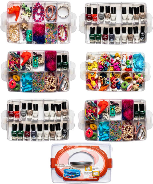 6-Piece Clear Plastic Storage Box with Snap-Tight Latch - Organizer Container for Pencils, Puzzles, Small Toys, Jewelry Making & Sewing Crafts (Small Size)