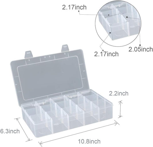15 Large Grids Plastic Organizer Box with Dividers, Clear Compartment Container Storage for Washi Tapes Beads Crafts Jewelry Fishing Tackles, Size 11 x 6.3 x 2.2 in