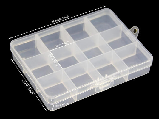 2 Pack Plastic Small Crafts Storage Boxes with Adjustable Dividers (15 Grid)