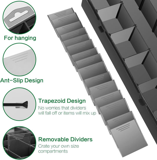 Large 24 Grids Plastic Organizer Box Adjustable Dividers,Clear Storage Box for Jewelry, Art DIY Crafts, Washi Tapes, Beads and Small Parts(Black,2Pack)