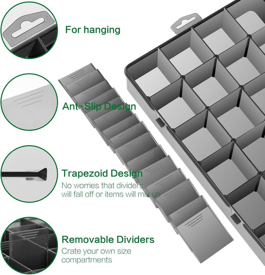 Large 24 Grids Plastic Organizer Box Adjustable Dividers,Clear Storage Box for Jewelry, Art DIY Crafts, Washi Tapes, Beads and Small Parts(Black, 1Pack)