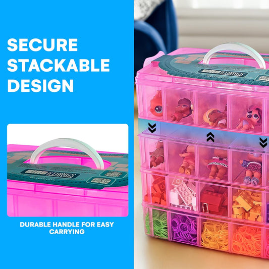 Bins & Things Bead Organizer with Adjustable Compartments - Durable Toy Organizers and Storage Solution for Dolls, Crafts, Mini Toy Figures, Jewelry and Beads - 4 Tier, 40 Compartments, Pink