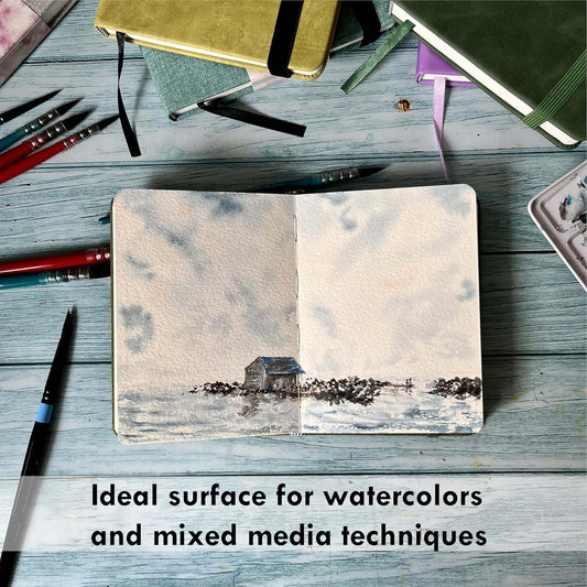 tumuarta 100% Cotton Watercolor Journal Sketchbook, Cold Press, 7.5x5 in, 140 LB, 300GSM, Acid Free, 24 Sheets,48 Pages, Watercolor Journal for Use As Travel Notebook and Mixed Media Pad On The Go
